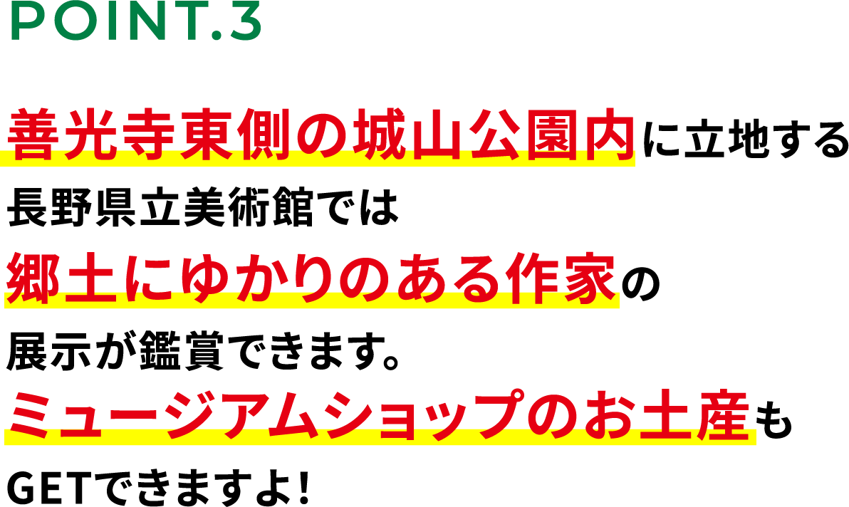 エレベーター、エスカレーターはございませんので、あらかじめご了承ください。 - ※引換券は、当日16時まで使用可能、長野県立美術館は17時閉館