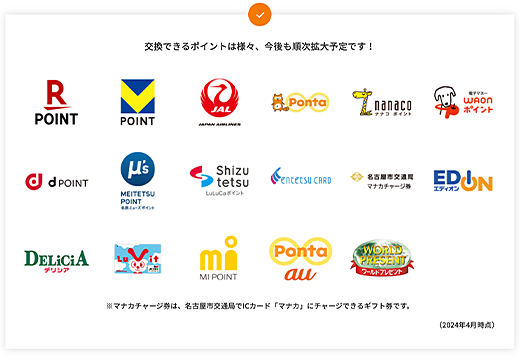 提携先(名古屋銀行、FDA、ALSOK、SECOMなど)のサービス利用でポイントがたまる!